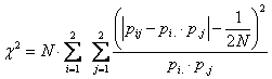 - pij è la frequenza relativa osservata di una casella - pi e pj è la somma di riga e di colonna delle frequenze relative, per cui il loro prodotto - pi × pj è la frequenza attesa in ogni casella collocata al loro incrocio e - N è il numero assoluto di osservazioni.
